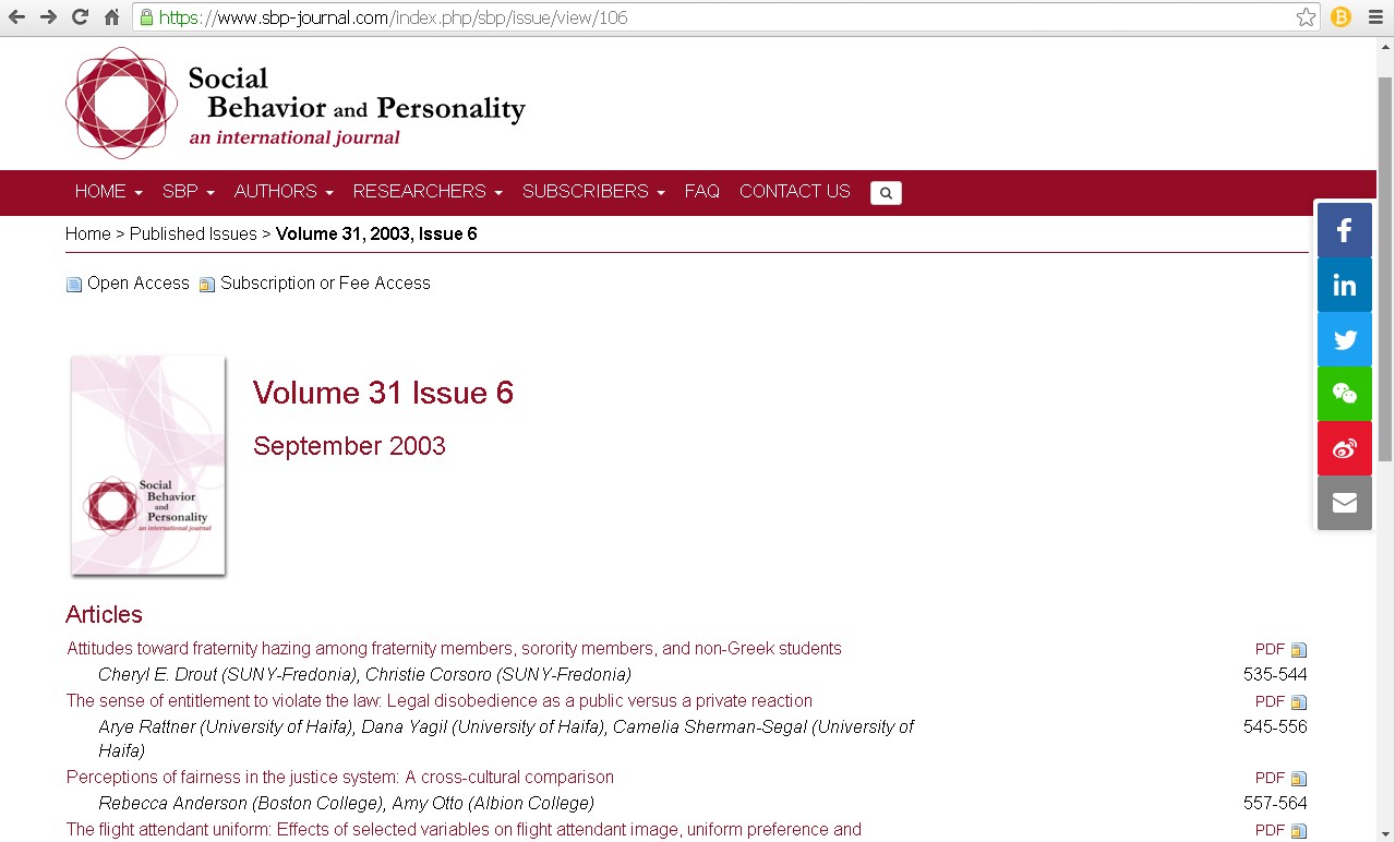 This claims to be in the Journal of Social Behavior and Personality, 2003,
